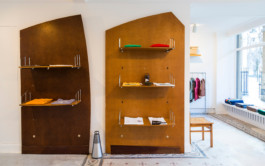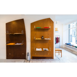 For the brand A Young Hiker, we designed this store in the jardin du Palais Royal in Paris. It recently moved to the new boutique Words, Sounds, Colors and Shapes, in the Marais